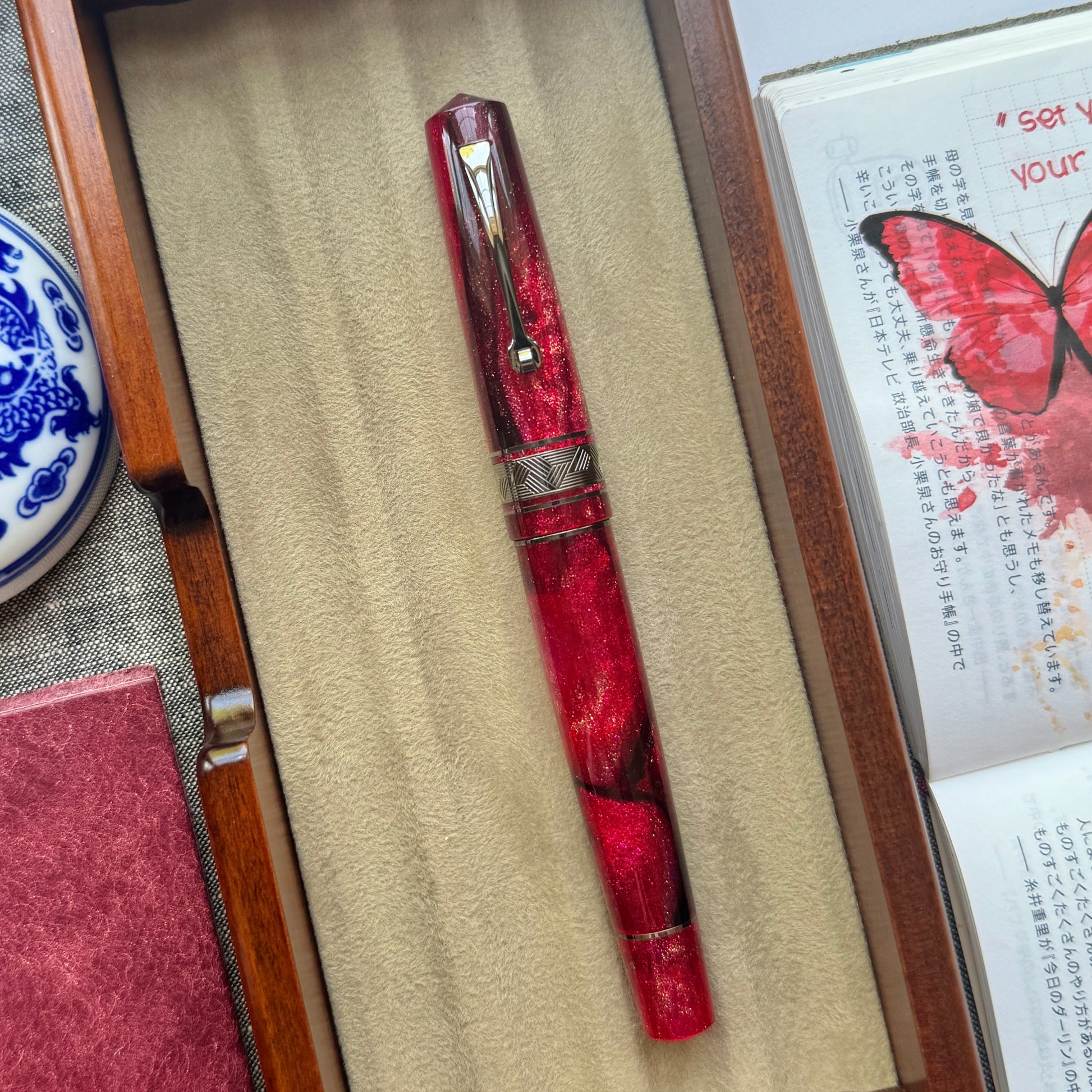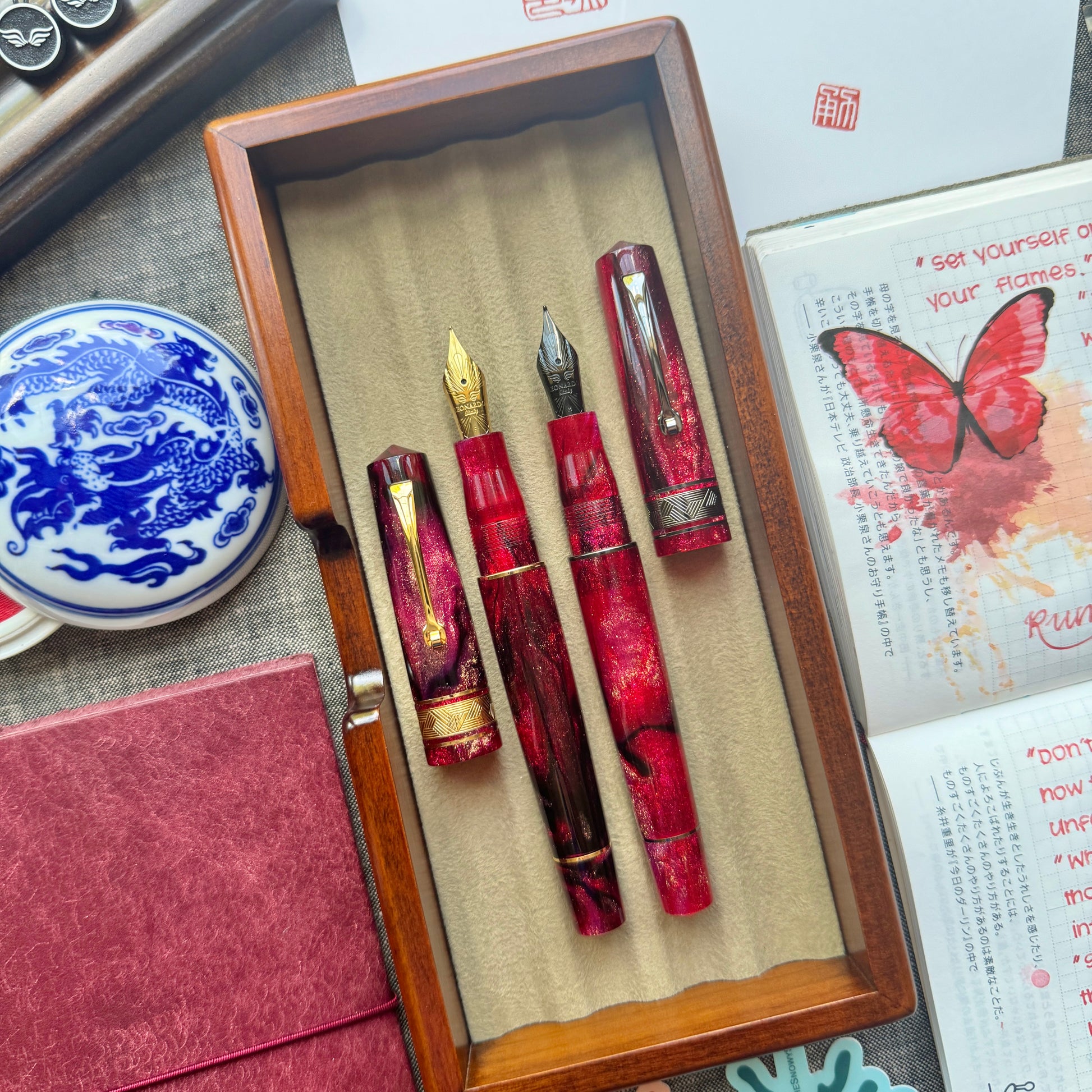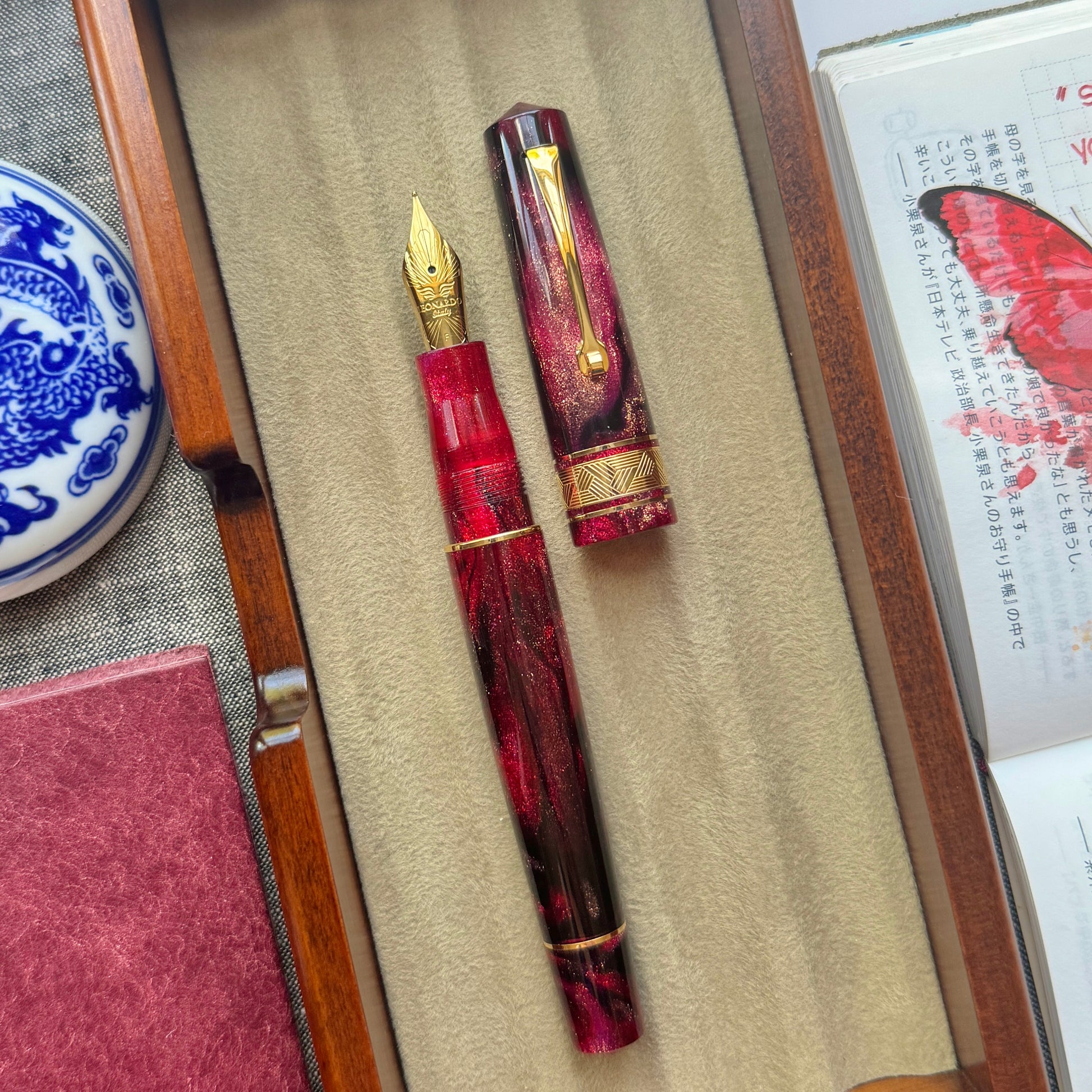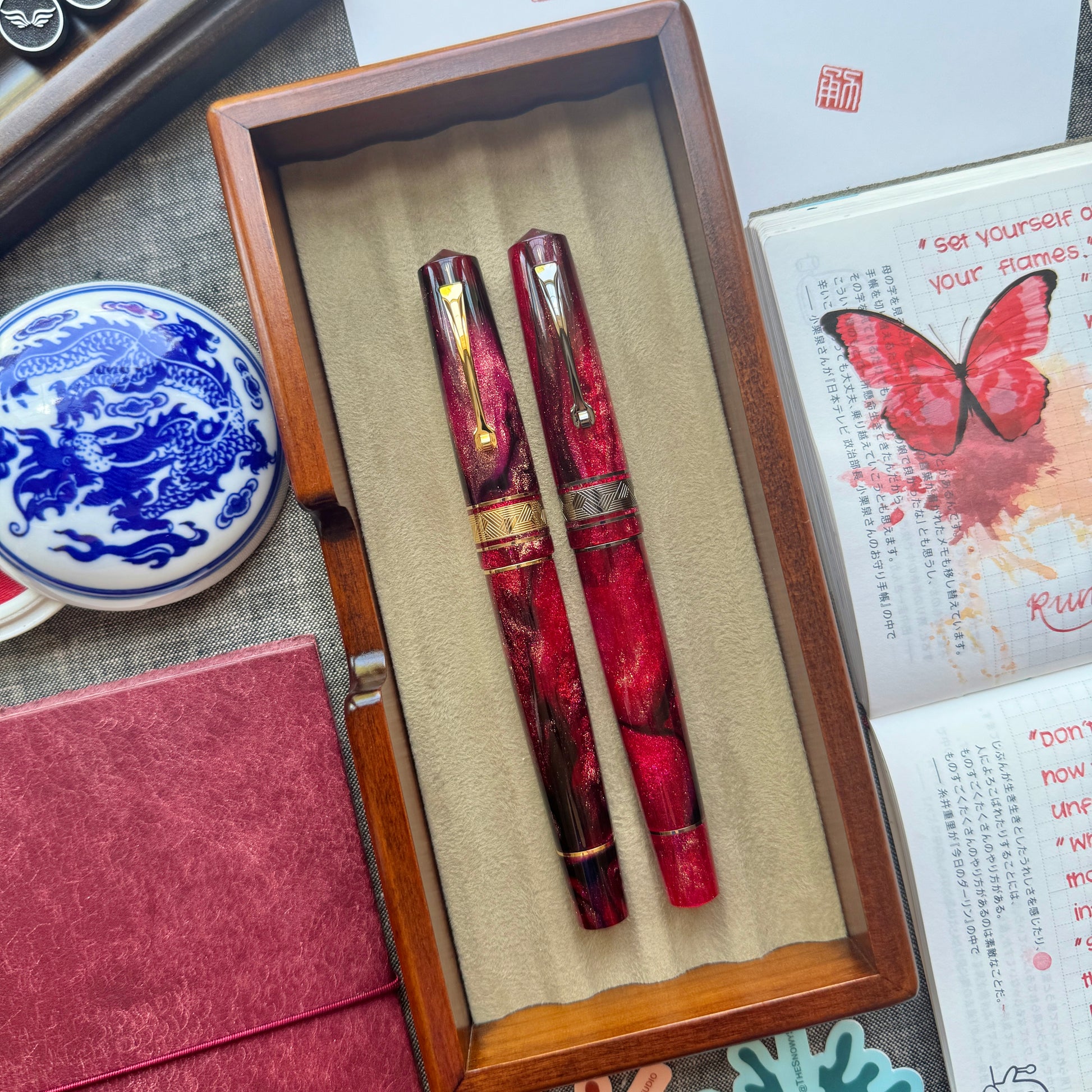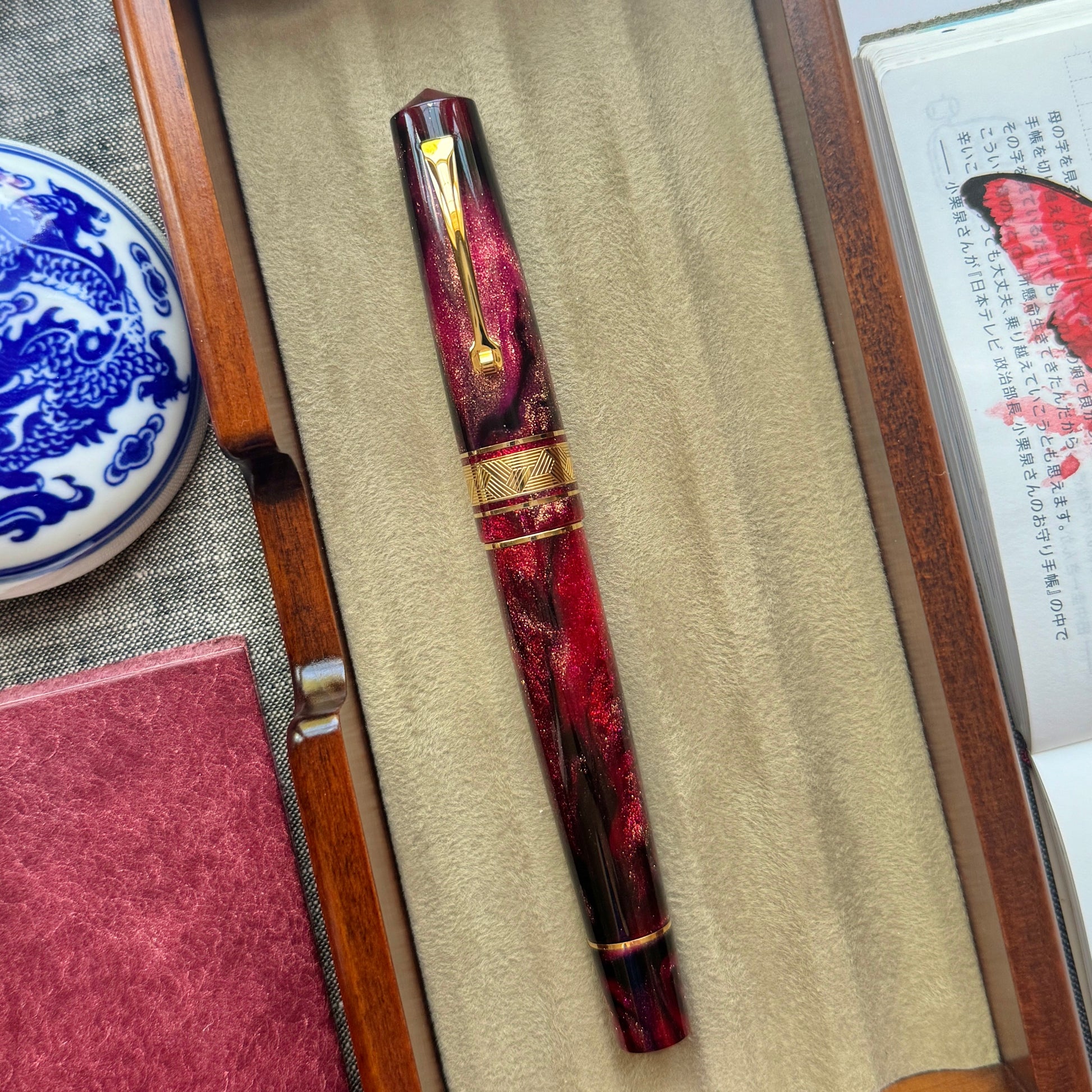 Lunar New Year is a very important celebration in our family. As this year is the Year of the Dragon, when I first saw this gorgeous material, I immediately thought that this would be the perfect material for a Year of the Dragon pen. In Chinese culture, dragons symbolize good luck, strength, and power, while the color red and gold symbolize joy, good fortune, and prosperity.